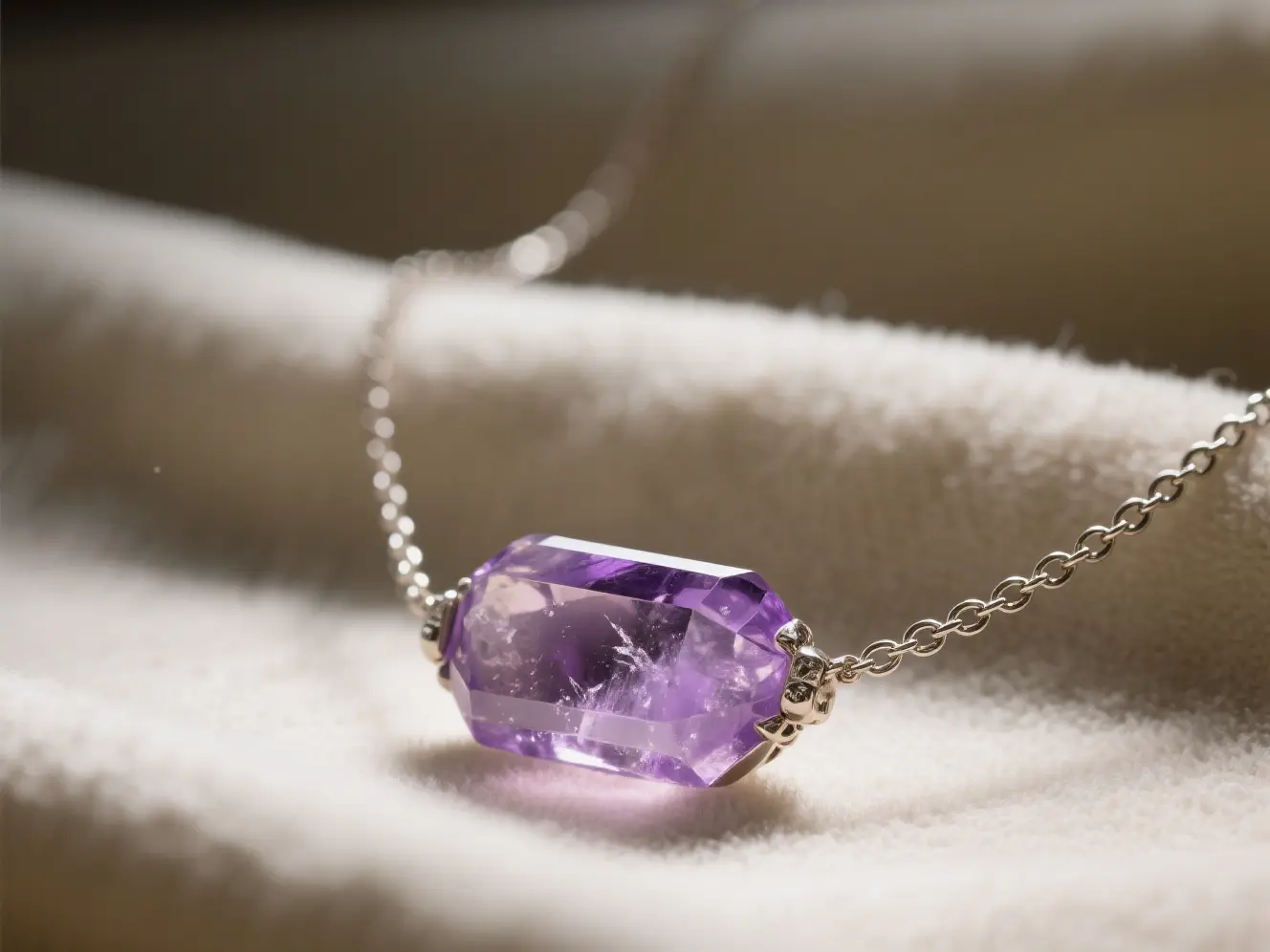 紫水晶吊墜項鍊來啦!神秘紫調高級又迷人,晶體內紋理自然獨特。簡約銀鏈搭配,凸顯水晶的高貴。紫水晶向來被視為智慧與靈性的象徵,戴上它,在工作生活中助你保持清晰思緒,也為穿搭增添一抹神秘魅力。