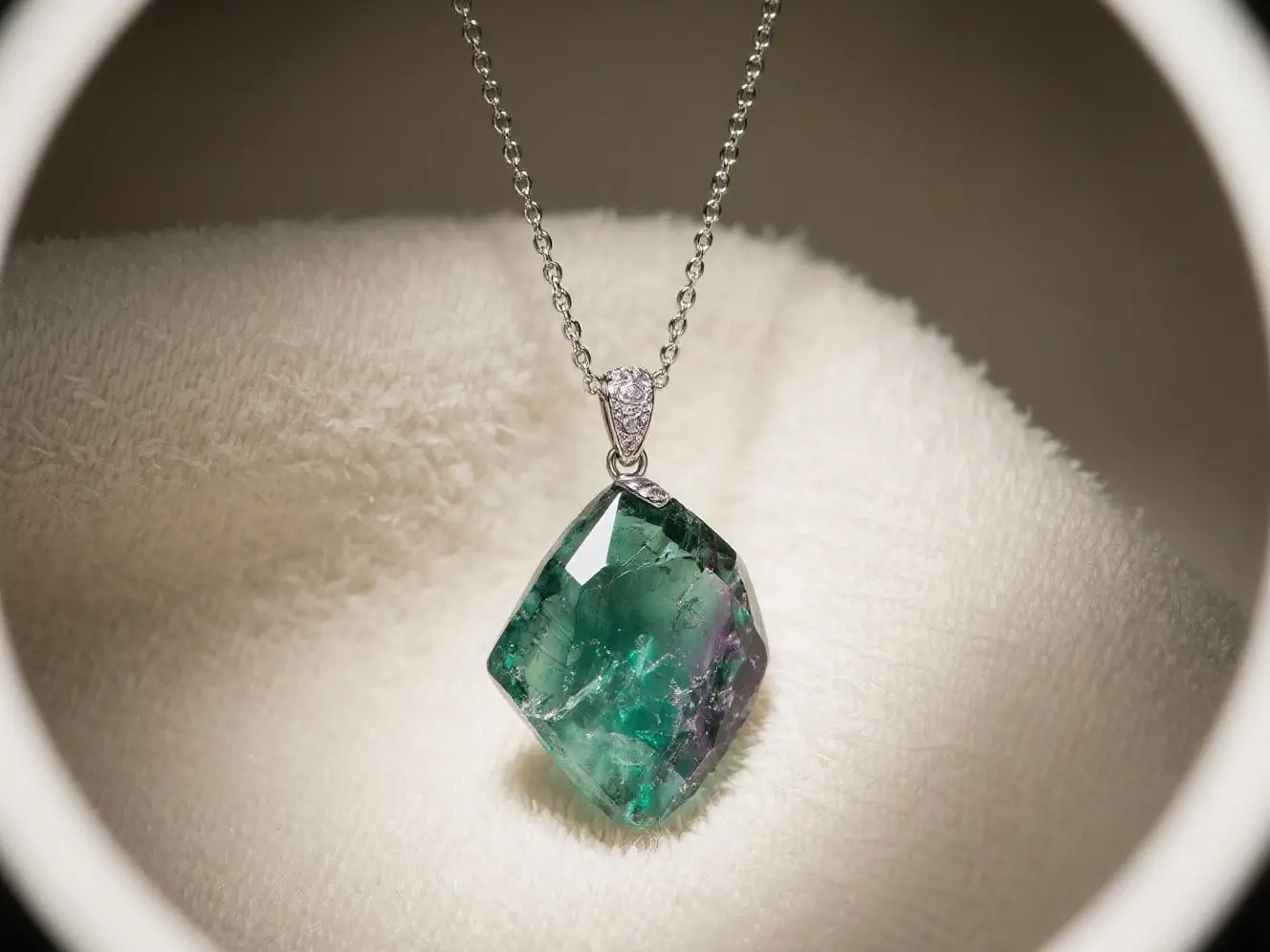 綠水晶吊墜項鍊別具一格。濃郁綠色晶瑩剔透,內部紋理如山水畫般美妙。銀色鏈條簡約大氣,吊墜設計精緻。綠水晶寓意活力與希望,戴上它,為生活注入滿滿生機,無論何種場合,都能讓你成為焦點。