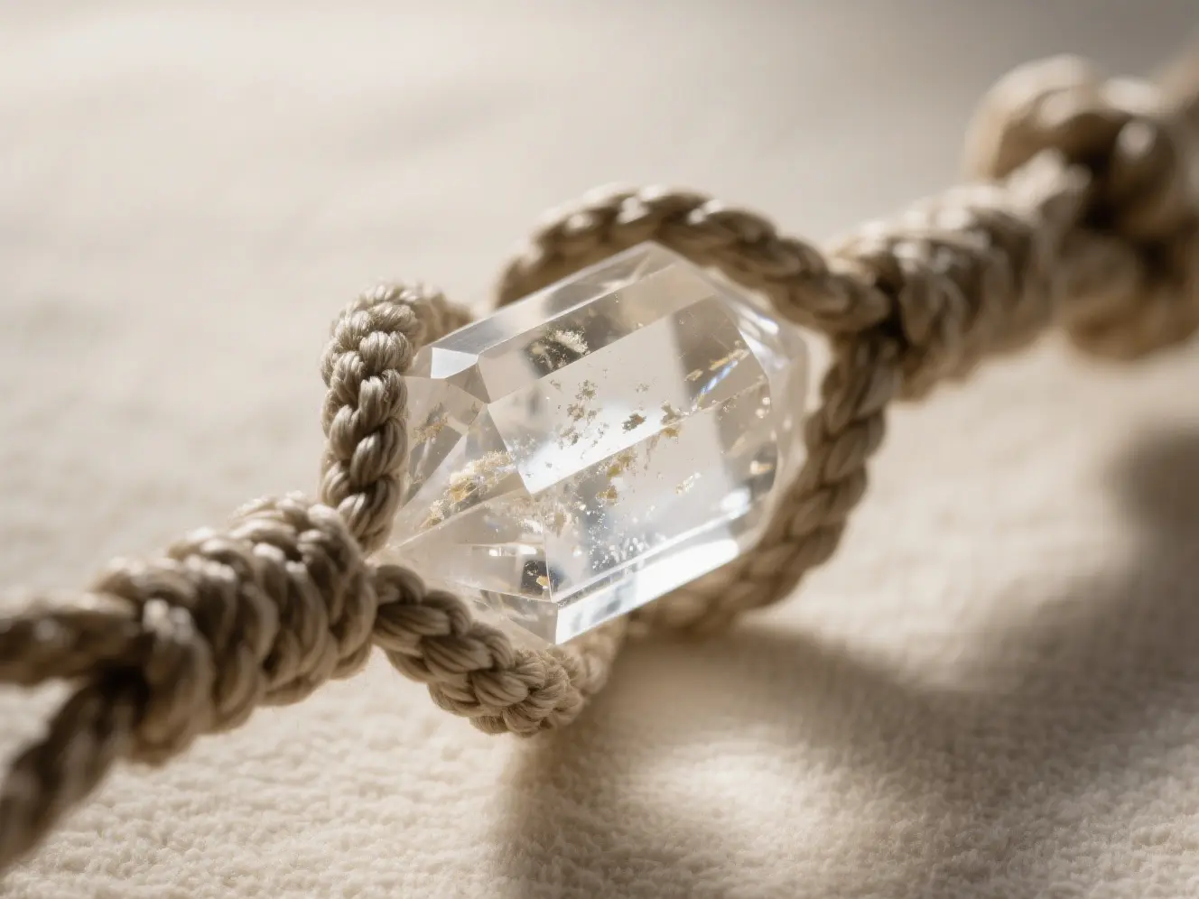這款白水晶吊墜項鍊簡約又精緻。晶體通透,切割工整,在光線下閃閃發亮。銀色鏈條搭配閃鑽點綴,更顯高級。白水晶寓意淨化,戴上它,仿若給心靈做個 SPA,無論日常通勤還是約會,都能為你增添優雅氣質。